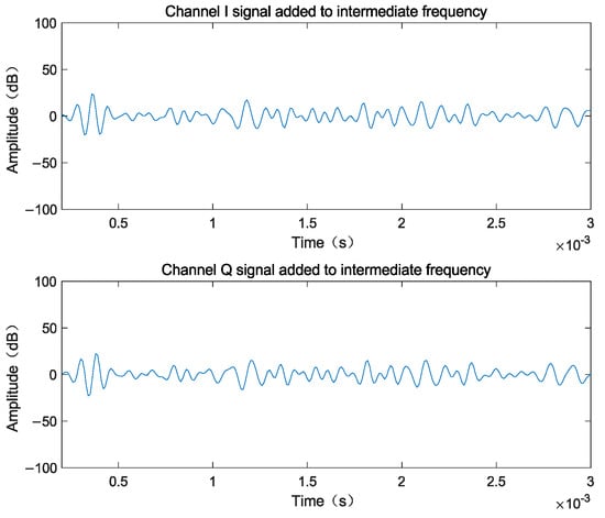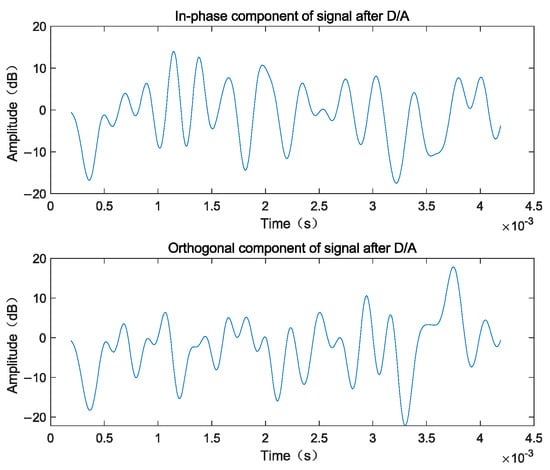 The signal data of IUDCS are filtered and smoothed by a D/A filter, and the filtered integrated detection and communication signal transmitted is of the in-phase and orthogonal components, as shown in Figure 11.
