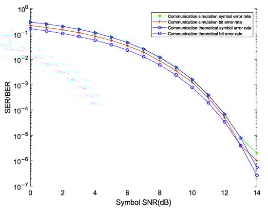 Figure 19. Comparison of symbol error rate and bit error rate between communication theory and simulation.