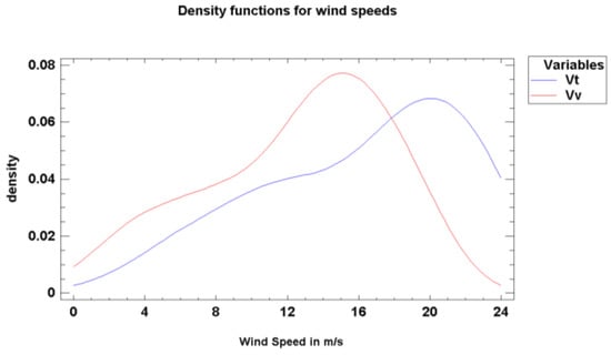 Figure 7 depicts the comparison between the two samples, where Vt is the wind velocity at Tarifa (predictors) station, and Vv is the wind velocity at Valdevaqueros Dune (predictands).