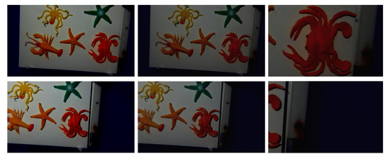 For the low-light group in the test set shown in Figure 13, we adopted a similar strategy. In the first image pair, the objects appear very vague against the low-light environment but our network fails to distinguish them from the background. This implies the oversmoothing problem, which is very common in convolution networks. Although our Attentional Feature Fusion module can alleviate the phenomenon, it is still a great challenge for underwater stereo matching. As for the second and third image pairs, the main challenge is to recover the details of the objects. Our network shows a strong ability to deal with this issue.