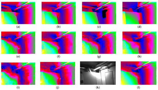 - Mayer, N.; Ilg, E.; Hausser, P.; Fischer, P.; Cremers, D.; Dosovitskiy, A.; Brox, T. A Large Dataset to Train Convolutional Networks for Disparity, Optical Flow, and Scene Flow Estimation. In Proceedings of the 2016 IEEE Conference on Computer Vision and Pattern Recognition (CVPR), Las Vegas, NV, USA, 27–30 June 2016; pp. 4040–4048. [Google Scholar] [CrossRef]
