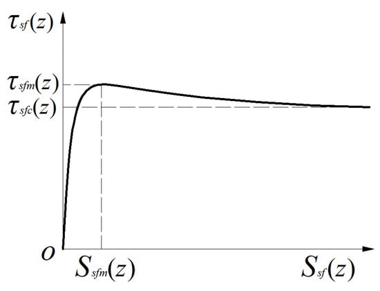 According to the results of interfacial shear tests and the literature [28], it can be seen that the functional variation characteristic between pile side friction and pile rock relative displacement meets the softening model of pile side friction: