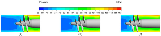 In order to study the influence of different axial positions on the flow characteristics inside the inducer, the distribution of the static pressure coefficient (Cp) in the inducer basin is analyzed. The static pressure coefficient is a dimensionless number that describes the relative pressure across the entire flow field in fluid dynamics. It can reflect the pressure fluctuations generated by the fluid flowing in the flow channel. It is defined as