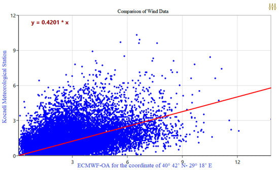 a. The wind climate module conducts long-term and extreme analyses of the wind data for the specified station. Moreover, this module analyses the data using ECMWF at each 0.1-degree horizontal grid spacing by 6 hourly time frames encompassing all Turkish coastal waterways between the years 2000 and 2022. It is possible to collect annual, seasonal, and monthly wind roses, all of which give information on the directional variation of wind speeds. The highest wind speeds and the directions in which they blow are examined, and then the prevailing wind direction for the area is analyzed and calculated. The statistical analysis of the yearly maximum wind speeds is performed using the Gumbel Probability distribution, and the most appropriate line is then fitted to the wind speeds presented in this study. Extrapolation to a greater value is thus feasible.