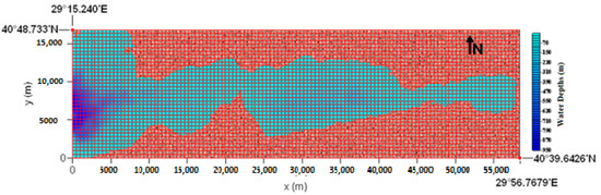 HYDROTAM-3D is the Three-Dimensional Numerical Hydrodynamic sub-model based on the Navier–Stokes equations. The computational module of the sub-model is given in Figure 6. The model has been developed to simulate the flow of water in complex geometries, such as estuaries. The accuracy of HYDROTAM-3D has been assessed through comprehensive verification and validation studies, and the model has been applied to a wide range of applications in the last 20 years [14]. The authors presented results from a series of test cases to assess the accuracy and efficiency of the model. The 3-D numerical model of HYDROTAM-3D was used to study the circulations in coastal waters [15]. They applied their model to simulate the coastal circulation in İzmit Bay (Marmara Sea), Turkey, and discussed the circulation patterns and their impacts on the water quality in the region [16]. HYDROTAM-3D simulated stratified coastal waters, which are characterized by variations in temperature and salinity.