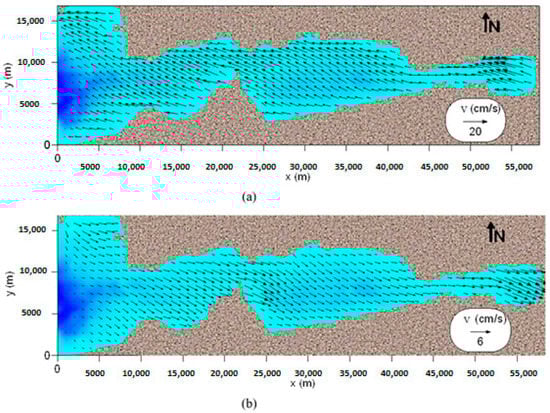 where p represents the pressure, u and w represent the horizontal and vertical flow velocities, v represents the velocity vector, and is the sediment-water mixture density, are unity vectors as obtained from the hydrodynamical model. The transport equation is given in Equation (33) and the sediment concentrations were estimated by the sediment transport module of HYDROTAM-3D.