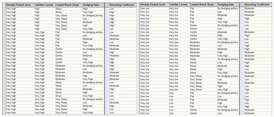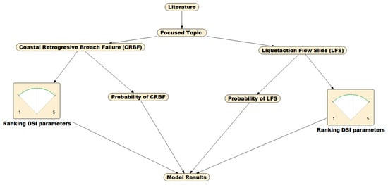 The hybrid model and the sensitivity index developed were validated by the Bayesian Network (BN) by which the relations of CFS depth, sediment density, fluid density, and porosity on vital parameters such as Shields parameters, shear stress, critical angle slope, and active wall velocity were confirmed by the MCS module. The simulation of coastal flow slides by the BN module is illustrated in Figure 22. The validation of DSI was assessed by using the literature and applying the hybrid model according to the flowchart given in Figure 23.