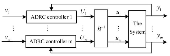 Essentially, the ADRC technology regards the of i-th channel as the external disturbance of the channel, while the ADRC controller of each channel can estimate and compensate for the external disturbance independently. Therefore, the virtual control variable Ui and the output variable of each channel are in SISO relationship, that is, the system realizes the complete decoupling control by introducing virtual control vector. The decoupling control process of the MIMO system based on active disturbance rejection technology is shown in Figure 2. The desired input value and the actual output value of the system constitute a closed-loop channel. Each ADRC controller can achieve independent control of the corresponding channel so that the actual output of the system converges to the desired value.