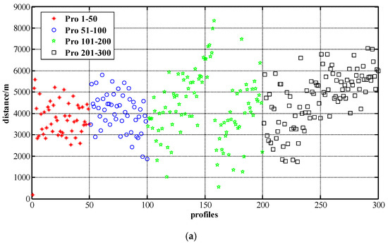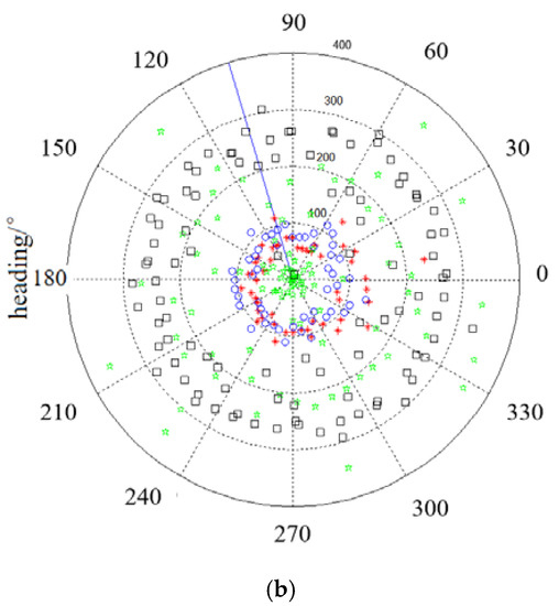 The real distance and heading data required in the sea trial. (a) The distribution profile distance of the UG. (b) The distribution profile heading of the UG.