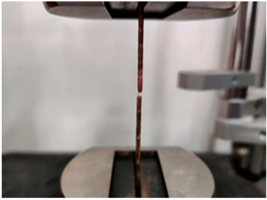 Figure 6 is the fixture used in the mesh tensile test. The mesh wire diameter was the same, 100 mm. One end of the wire was placed in the lower fixed fixture groove; the other end was placed into the upper same fixture groove. In order to make the force uniform, the length of the wire placed in the two fixtures was approximately the same, and the force of 100 mm/min was applied to pull upward until the wire broke. Finally, the data was recorded and saved by the computer. The next set of experiments was conducted in the same way.