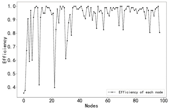 In order to evaluate the importance of each node in the network, we performed the above steps for each node so that each node triggered the successive safety process. Finally, the network efficiency of each node at the end of the successive safety process was obtained (see Table 4).