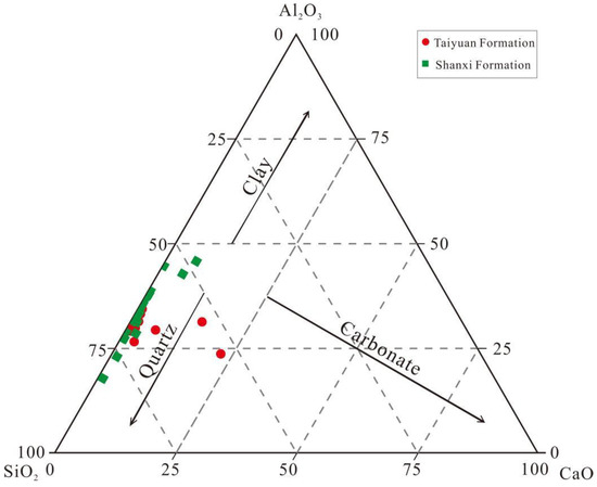 SiO2−Al2O3−CaO ternary diagram for the TYF and SXF shale samples from the MY1 well.