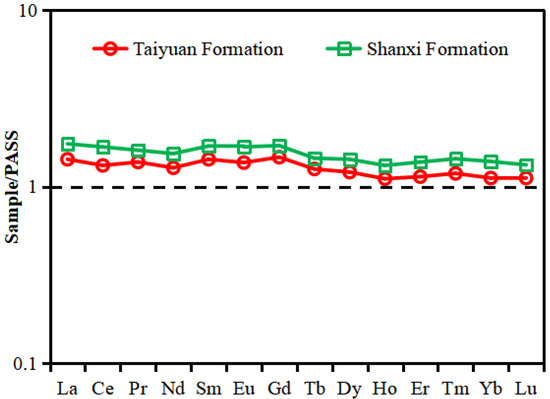 PASS-normalized REE distribution patterns of the TYF and SXF shale samples [37].