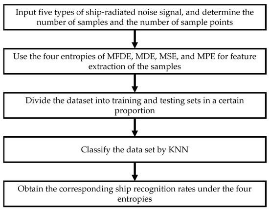 The overall structure of this paper is as follows: Section 2 details the calculation steps of DE, FDE, and MFDE and the steps of the MFDE-based feature extraction method; Section 3 verifies the availability of FDE by means of several sets of simulated signals and investigates the effect of different parameter variations on the entropy value of MFDE; Section 4 explores the effectiveness of MFDE for the feature extraction and recognition of ship-radiated noise under different features; Section 5 summarizes the whole article.