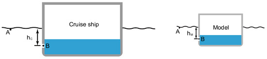 The ratio of the cross-sectional area (S) of the cruise ship to the model is , and the ratio of the volume (V) is . Therefore, the conversion coefficient C of the flooding time of the cruise ship and the model is obtained, as shown in Equation (4):