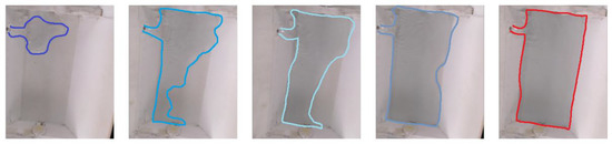The model ship’s damaged opening corresponds to a circular opening with an actual radius of 1.2 m. According to the process in Section 2.1, a video camera is set up on top of the damaged compartment, which obtains the flooding video when flooding water flows. The remaining compartments do not have any recording equipment. Each compartment is equipped with a flooding alarm at the same height as the door. When the door is flooded, the difficulty of escaping will greatly increase. This is the reason for the selection of the height of the flooding alarm, and it is also the “specified height” in Section 2.1. Note that a flood alarm and a flood sensor are not the same. The price of the former is much lower than that of the latter.