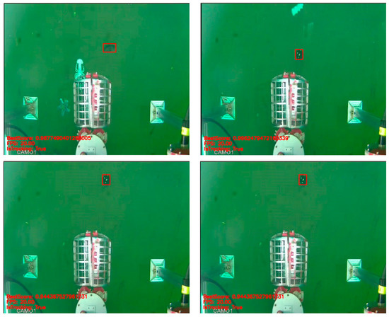 The underwater vehicle tracks the target after identifying it in the pool. Figure 12 illustrates the depth variations during the target tracking process of the underwater robot. The changes in the Z-axis coordinate refer to the height variations of the vehicle relative to the seabed. The acquisition of underwater video data relies on the movement of the underwater vehicle. Multiple videos are collected. The videos are intercepted according to the setting of 7–10 pictures per frame, and a total of 4757 images are collected. Using this underwater dataset for tracking tests, it is concluded that the accuracy of this algorithm is 76.3%.
