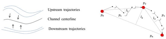 We calculated the arithmetic mean of the upstream and downstream trajectories [14] to represent the channel centerline, which is shown in Figure 2.