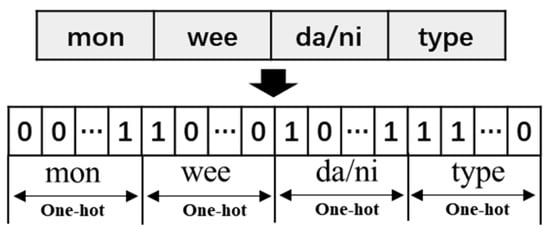 However, it can be challenging for neural networks to disentangle the underlying meaning of text attributes. Inspired by previous work [17], we perform one-hot encoding for each categorical attribute, such as month, week, day/night, and vessel type, as shown in Figure 5. We then concatenate the resulting embeddings with the vessel’s digital information, such as vessel length, width, and power, resulting in a vector that can be used as an input to our deep learning model for prediction.