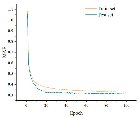As shown in Table 4, it is clear that the best structure is structure C, which presents the lowest MAE and consists of three convolution layers with a combination of nodes equal to 32-32-64. The training process is shown in Figure 13.