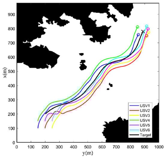 Trajectories of USV swarm control conducted by Tan et al. [32].
