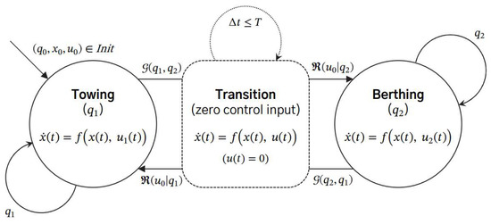 In a subsequent study [24], the authors considered modeling disturbances such as wind, current, and waves, which are types of environmental disturbances. They applied the Sliding Mode Control (SMC) technique, a robust control method, instead of the adaptive control method. SMC can handle not only uncertainties in quickly changing parameters but also disturbances or dynamic components not included in the model. SMC is more resistant to disturbances compared with the adaptive control technique. The effectiveness of these control methods was verified using a 1:70 scale model ship, also known as a “cybership”. In another study [3], the authors proposed a new robust controller methodology through matrix decomposition. They arranged the tugboats in a specific configuration, which converted the overall problem into a second-order system with an asymmetric input gain matrix. The studies mentioned above primarily focused on developing control methods for tugboats, but did not address the control of the mothership’s attitude, which involves the positioning and orientation of the ship during the berthing process. Moreover, these studies only modeled each tugboat as an azimuth propulsion system and did not consider the actual physical interaction between the tugboats and the mothership, where the tugboats push and pull the mothership. Therefore, there is still a need for research on developing control strategies that take into account the actual physical interaction between the tugboats and the mothership and ensure precise control of the mothership’s position and attitude during the berthing process.