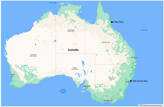 For this study, two buoy sites were selected for wave monitoring in Queensland, namely the Cairns buoy and the Palm Beach buoy (Figure 1). The Cairns buoy is located in southeast Queensland near Cairns with a 12 m monitoring depth at coordinates 16°43.830′ south latitude and 145°42.910′ east longitude. In contrast, the Palm Beach buoy is located in far north Queensland near Sydney with 23 m monitoring depth at coordinates 28°05.956′ south latitude and 153°29.073′ east longitude. The Queensland Government Meteorological Department collects significant wave height data at 30 min intervals. For this study, significant wave height data were downloaded from the Queensland Government website (https://www.data.qld.gov.au/dataset, accessed on 7 March 2023) at 30 min intervals for both buoy locations from 1 January 2022 to 31 December 2022. A brief statistical summary of the data used is provided in Table 1. This study uses the average hourly data with a split ratio of 75% training and 25% test to apply models to predict single-level and multi-level significant wave height (SWH). To predict SWH, only historical data of the SWH variable of both stations were used as inputs; it is worth noting that both stations were not connected as one was on the northern side, whereas the other station was on the southeast side of Queensland, as mentioned above. Data from 1 January 2022 to 30 September 2022 was adopted as the training dataset, whereas data from 1 October 2022 to 31 December 2022 was adopted as the testing dataset.