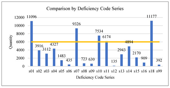 Comparison by deficiency code series 06000 (yellow line: tableau reference line).