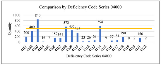Comparison by deficiency code series 03000 (yellow line: tableau reference line).