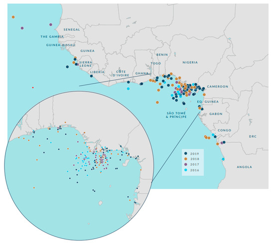 Piracy and armed robbery in the Gulf of Guinea from 2016–2019 (from [27]).