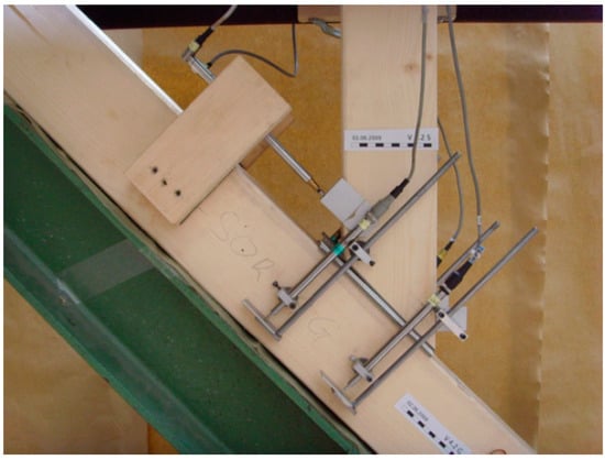 Analysis of the strength of traditional wood ships in Indonesia was conducted by Malisan Johny et al. [], but only theoretically. Koch et al. [], on the other hand, experimentally and numerically conducted a multimode failure analysis of form-fitting timber connections. A tapered tenon joint was considered, as shown in Figure 11. The authors pointed out the importance of the eccentricity of the joints and the weakening of structural members by the mortise. Furthermore, three types of failure were identified: rolling shear failure and front side and back face failure. The ABAQUS software package was used for the analysis, with the use of volume finite elements and elastic material parameters.