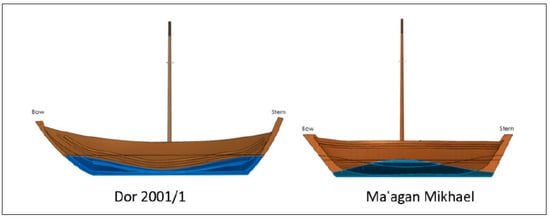 Murray et al. [] performed an experimental investigation of the origin and development of the waterline ram. The Trireme Trust’s 1:20 scale model of Olympias was fitted with two different bow types: (a) a control bow and (b) a cutter bow, (Figure 23).