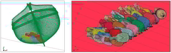 Ciortan and Fonseca [] carried out a numerical simulation of the sails of the 16th century Portuguese nau, Nossa Senhora dos Martires. After the ship’s excavation in 1996, it became possible to reconstruct its hull, but also the above-water structure, including the masts, yards and sails, as well as the latter’s aerodynamics. The authors used the well-known Star-CCM+ CFD software to explore the combination of wind incidence angles and yard angles on the ship’s sailing performance, as shown in Figure 18.