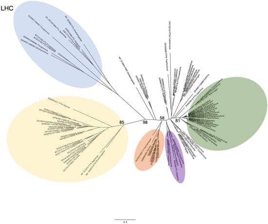 - Katoh, K.; Misawa, K.; Kuma, K.i.; Miyata, T. MAFFT: A novel method for rapid multiple sequence alignment based on fast Fourier transform. Nucleic Acids Res. 2002, 30, 3059–3066. [Google Scholar] [CrossRef]