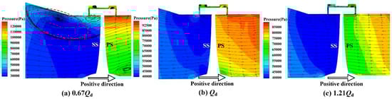 Pressure distribution on the blade surface at each flow rate.