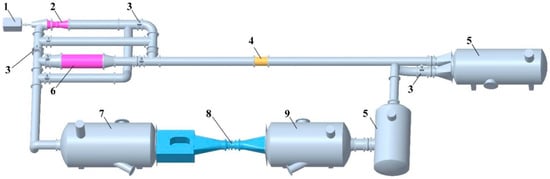 From the above study, it can be found that the external characteristics of the pump in the two operating directions are bound to be different. The characteristics of PP, entropy production rate (EPR) and vortex also have different degrees of difference. Therefore, this paper focuses on the study of the BFFP through the above aspects. Due to the small size of the BFFP model, the rotor motor is difficult to machine. Therefore, this paper still uses the drive shaft to drive the impeller. This paper focuses on the study of BFFP by combining numerical simulation and model testing [,,,]. Firstly, the test bench is designed and the PP and external characteristics of the “S” type BFFP unit are tested. Then, unsteady numerical simulations of the unit are performed. Finally, the accuracy of calculation is verified by model test. The research in this paper can play a positive role in the development of the FFP.