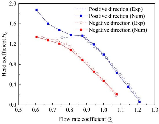 Before the external characteristic analysis, the dimensionless parameters head coefficient Hc and discharge coefficient Qc are introduced, and their respective equations are:
