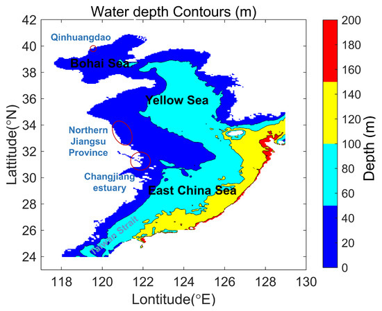 - Xie, S.; Jan, H.; Youichi, T.; Liu, W.T.; Hiroki, T.; Xu, H. Bathymetric effect on the winter sea surface temperature and climate of the Yellow and East China Seas. Geophys. Res. Lett. 2002, 29, 1–4. [Google Scholar] [CrossRef]