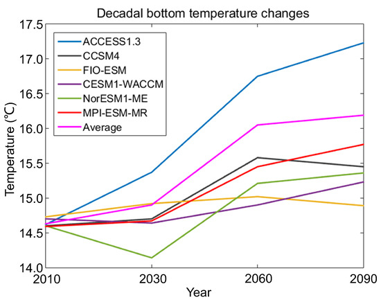 4.2. Projection of Interdecadal Bottom Temperature Changes