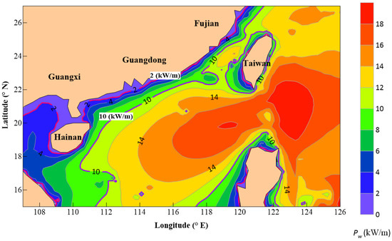 The severity of the fossil fuel pollution impacting the air, seas, and land is increasing and is seriously endangering the ecological environment and human health. In addition, as a nonrenewable energy source, fossil energy reserves are decreasing daily. The ocean offers an abundant source of renewable energy, such as solar, wave, and tidal energy. The energy crisis and environmental pollution caused by fossil fuels can be solved by renewable energy. Furthermore, since fossil fuel sources will continuously deplete over time, actively developing renewable and clean energy is the key to mitigating this impending problem. Wave energy is a renewable energy source that is easy to directly utilize and has attracted the attention of many coastal countries due to the advantages it offers, such as its wide availability, lack of pollution, and high energy output [1]. Long-term and sustainable supplies of energy are critical for maintaining the sustainable development of a country, which is itself of great significance to human socioeconomic development. China’s economic and social development also requires a large energy supply [2,3]. Fortunately, there are abundant wave energy resources in the coastal waters of the provinces along the South China Sea. The rational development and utilization of wave energy resources can effectively solve the energy supply and environmental pollution problems afflicting the provinces along the South China Sea.