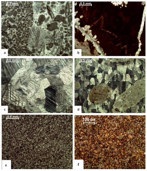 - Flügel, E.; Munnecke, A. Microfacies of Carbonate Rocks: Analysis, Interpretation and Application; Springer: Berlin/Heidelberg, Germany, 2010; Volume 976. [Google Scholar]