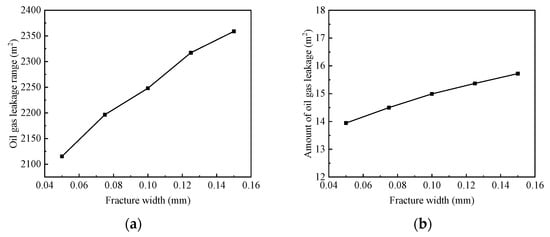 Variation in (a) range of oil vapor leakage; and (b) amount of oil vapor leakage versus fracture width.