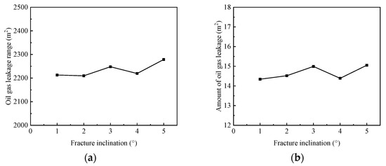 Variation in (a) range of oil vapor leakage; and (b) amount of oil vapor leakage versus fracture inclination.