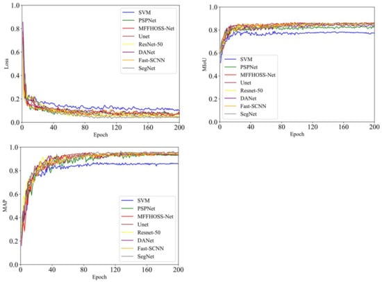 In this section, we first describe the experimental details and demonstrate the effectiveness of MFFHOSS-Net via ablation experiments, including a comparison of different levels of feature layers and the role of the attention mechanism module. Then, we show the experimental results via a series of graphs. Finally, we compare MFFHOSS-Net with other mainstream segmentation models and summarize the advantages and disadvantages of the model. In addition, we added support vector machine (SVM) experiments. The differences between traditional machine learning and deep learning were compared.