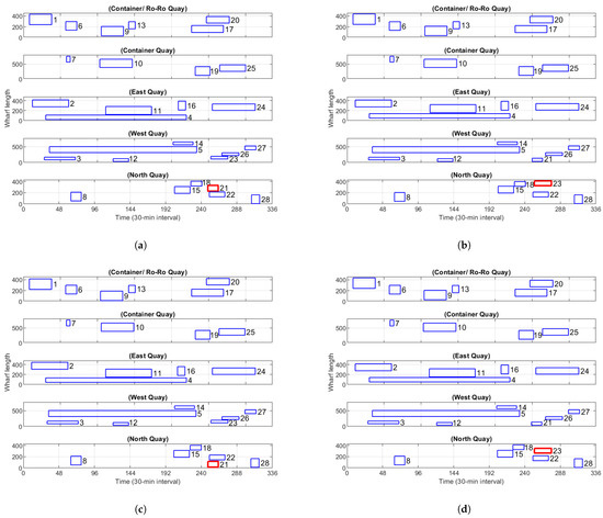 - Frojan, P.; Correcher, J.F.; Alvarez-Valdes, R.; Koulouris, G.; Tamarit, J.M. The continuous Berth Allocation Problem in a container terminal with multiple quays. Expert Syst. Appl. 2015, 42, 7356–7366. [Google Scholar] [CrossRef]