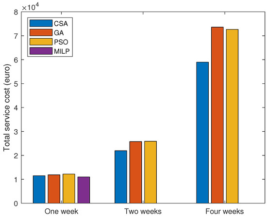 | CSA | GA | PSO | MILP | CSA | GA | PSO | MILP | |||