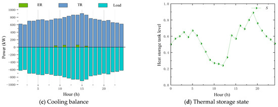 - Cold load management: The focus is on optimizing the collaborative operation of multiple equipment and maximizing cold load demand. By coordinating the operation of electric refrigeration units and thermal refrigeration units based on the ship’s thermal load and electric load requirements, the system ensures efficient cooling. When there is low thermal load demand and high electric load demand, electric refrigeration units are preferred for refrigeration. Conversely, in cases of high thermal load demand and low-power load demand, thermal cooling units are utilized.
