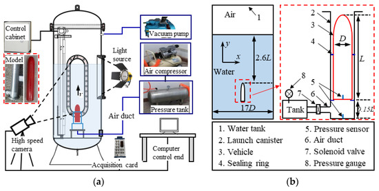 In this paper, the motion characteristics of the tail attachment cavity of the vehicle are studied by means of experimental methods. In the process of underwater high-pressure gas ejection vehicle motion, the isothermal process is usually applied without considering the influence of energy and temperature. In order to better understand the relationship between the control parameters and the test results, the control parameters of the attached cavity length are derived as follows: