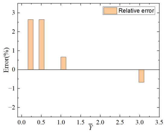 Figure 5 shows that the maximum relative error of the model diameter measurement under different displacements does not exceed 3%, indicating that the measurement of the cavity length in the experiment is accurate and acceptable. In fact, to photograph the complete process of the motion of the vehicle, the shortest distance between the camera and the model is larger than the displacement of the model, so we can ignore the measurement error caused by the shooting angle.
