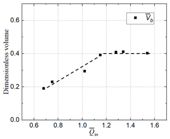 , the instability phenomenon occurs on the surface of the cavity. By extracting the contour of the cavity at the moment of breaking, and considering that the cavity is an axisymmetric shape, the volume change in the cavity was further calculated, as shown in